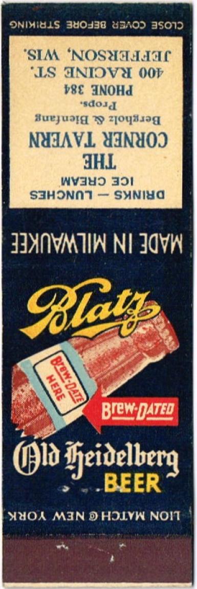 Blatz Old Heidelberg Beer Matchcover Item #93586