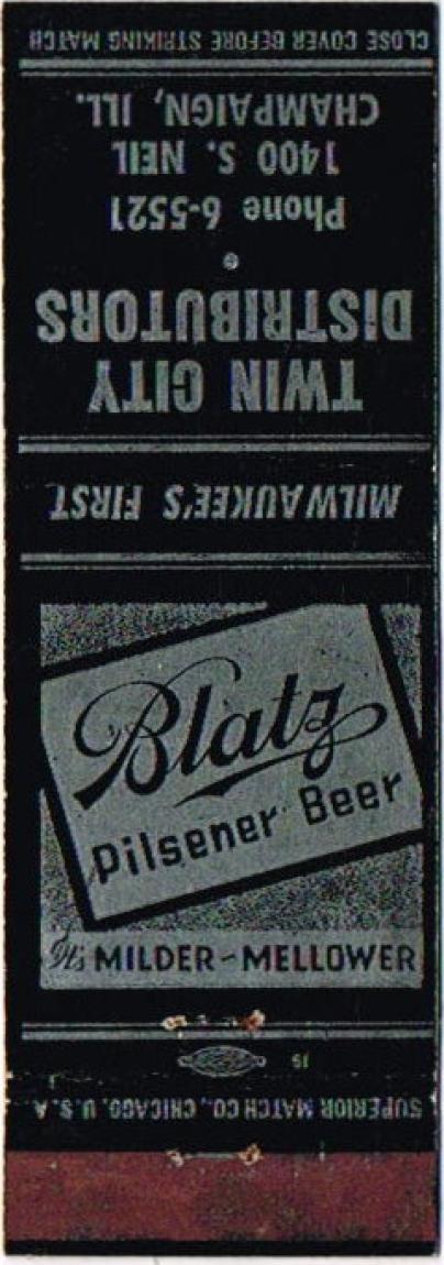 Blatz Pilsener Beer Matchcover Item #107430