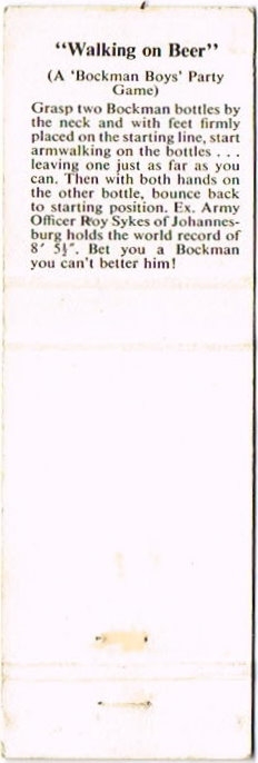 Bockman Lager Beer (attributed to SAB) Matchcover Item #26221