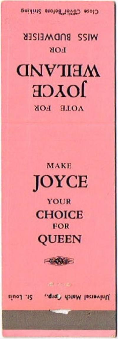 Budweiser Beer "Joyce Wieland" Miss Budweiser Matchcover Item #107835