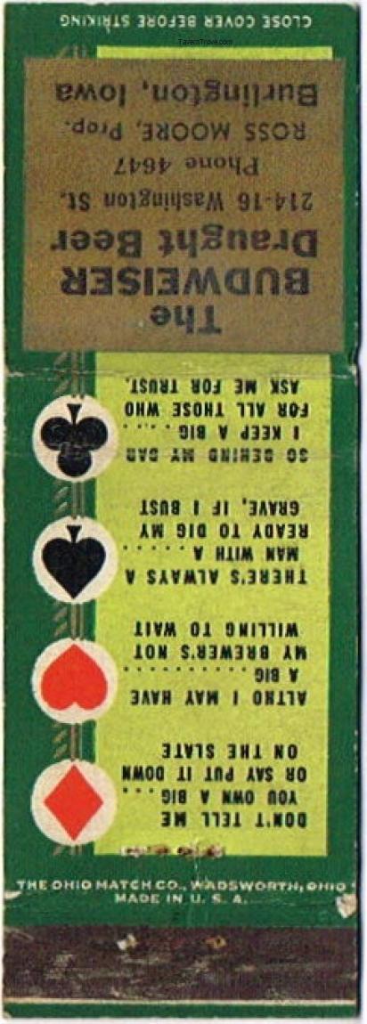 Budweiser Beer Matchcover Item #24679