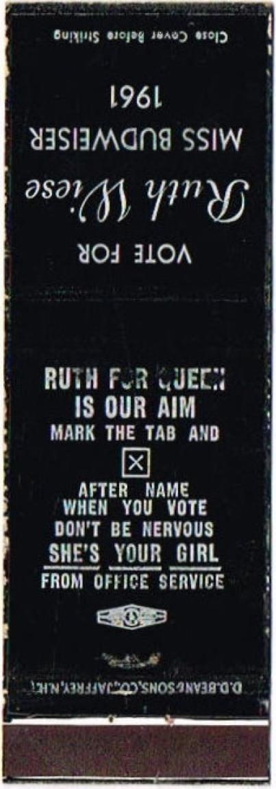 Budweiser Beer "Ruth Wiese" Miss Budweiser Matchcover Item #107836