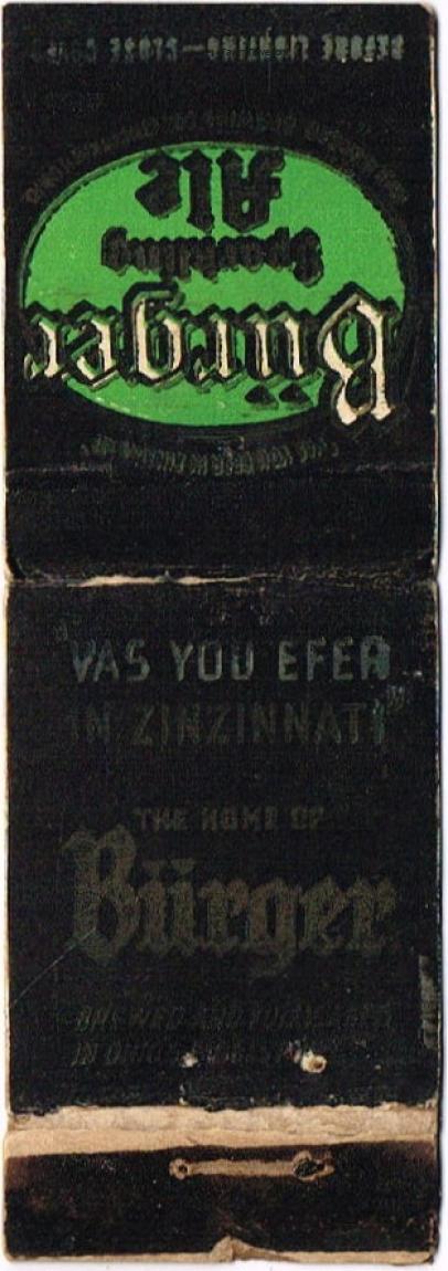 Burger Sparkling Ale Dupe Matchcover Item #112768