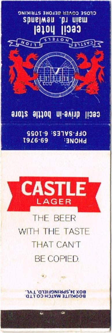 Castle Lager Beer/Martell Brandy Matchcover Item #52592