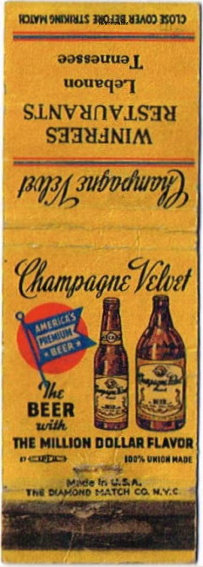 Champagne Velvet Beer Matchcover Item #110792