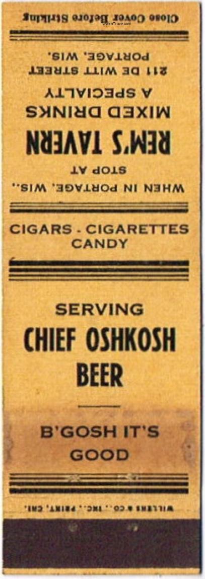Chief Oshkosh Beer Matchcover Item #110821