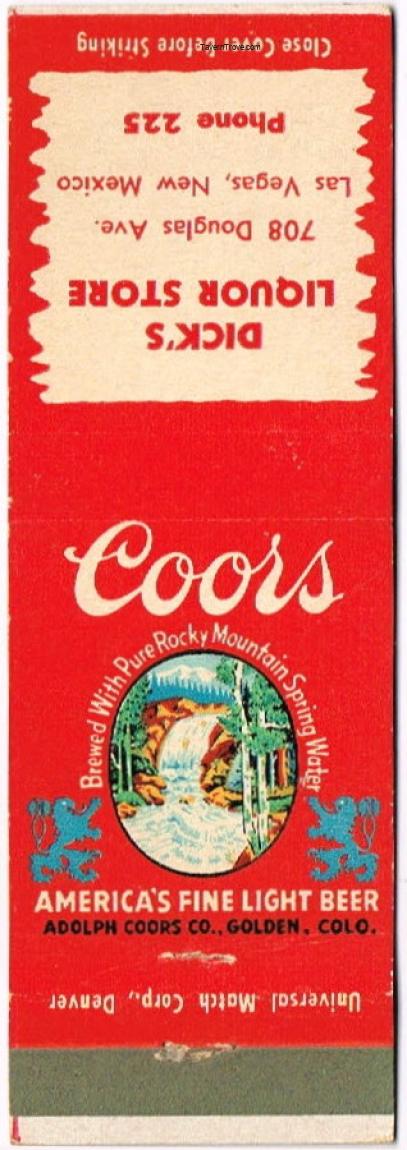 Coors Beer Matchcover Item #110448