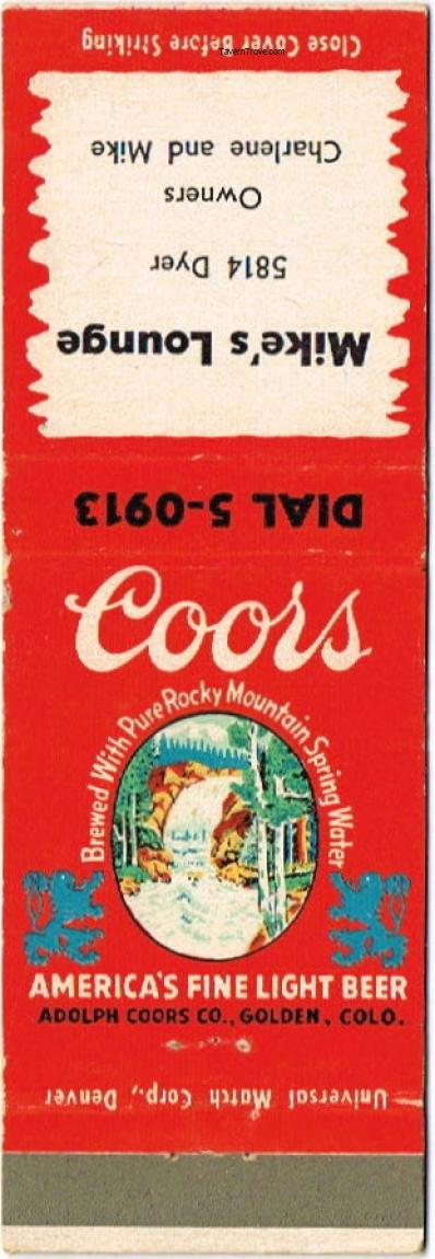 Coors Beer Matchcover Item #112219