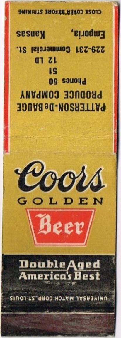 Coors Golden Beer Matchcover Item #114791