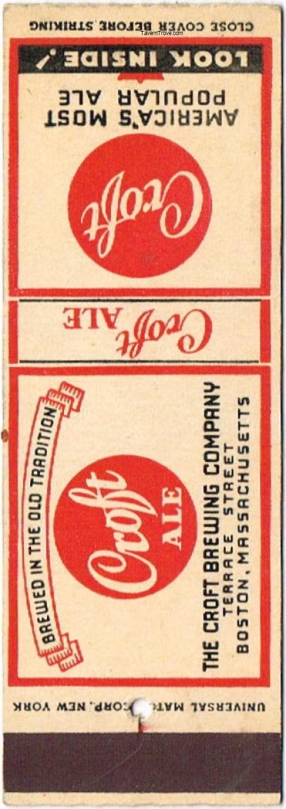 Set matchcover. Save these covers, they are valuable. To the person securing enough book match covers to spell out the words "Croft Ale" we will give $3.00 Cash.