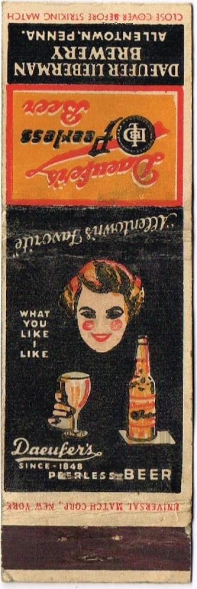 Daeufer's Peerless Beer Dupe Matchcover Item #112819