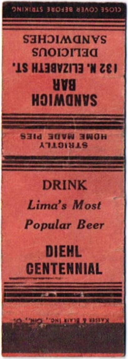 Diehl Centennial Beer Matchcover Item #110784