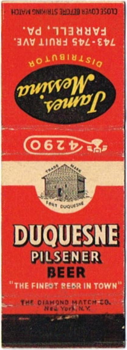 Duquesne/Silver Top Beer Matchcover Item #97613