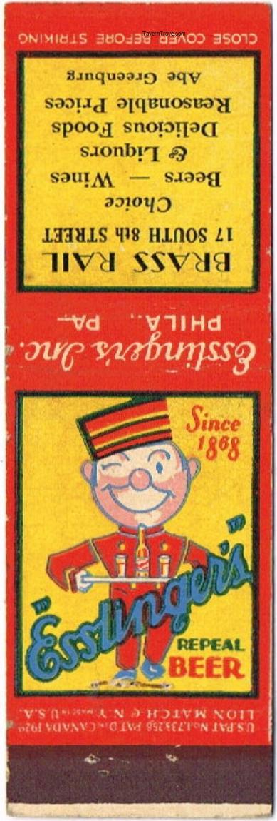 Rare matchcover issued immideately after the repeal of Prohibition.