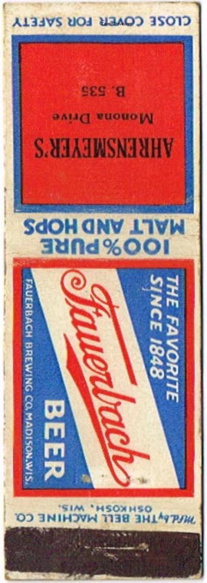 Fauerbach Beer Matchcover Item #111405
