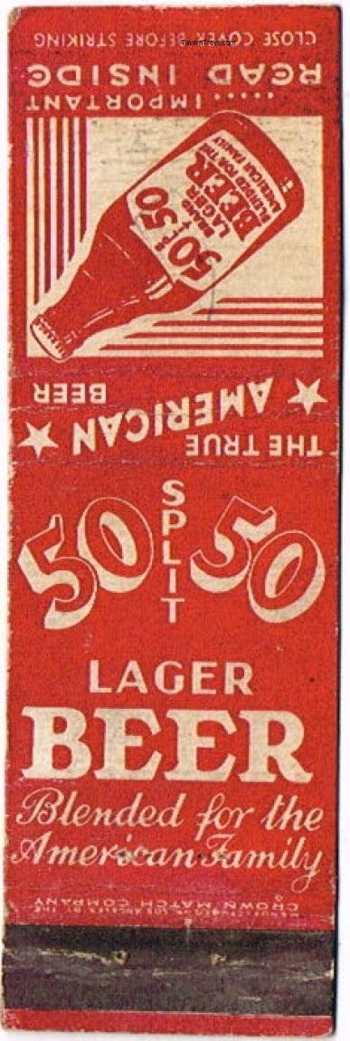 Fifty Fifty Split Lager Beer Matchcover Item #111420