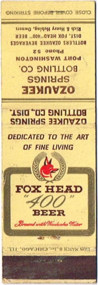Fox Head "400" Beer Matchcover Item #97355