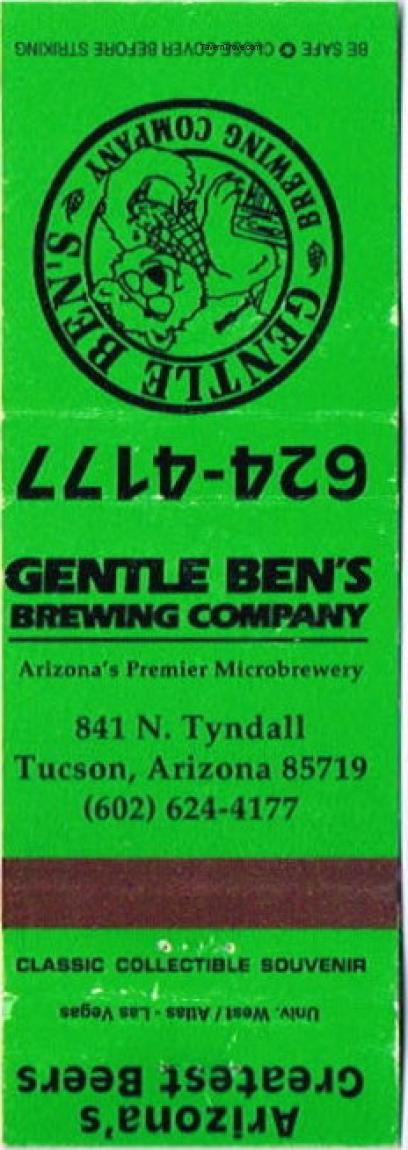 Gentle Ben's Brewing Co. Matchcover Item #106620