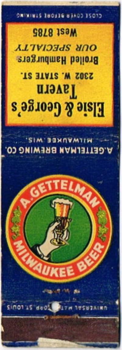 Gettelman Milwaukee Beer Matchcover Item #105102