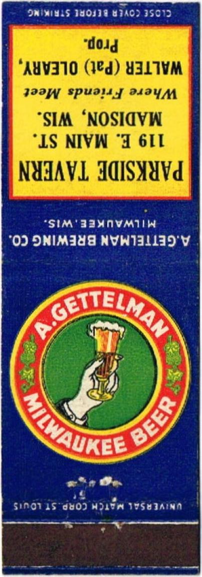 Gettelman Milwaukee Beer Matchcover Item #105103