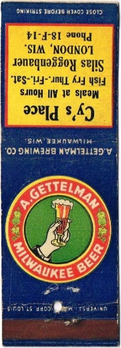 Gettelman Milwaukee Beer Matchcover Item #113295