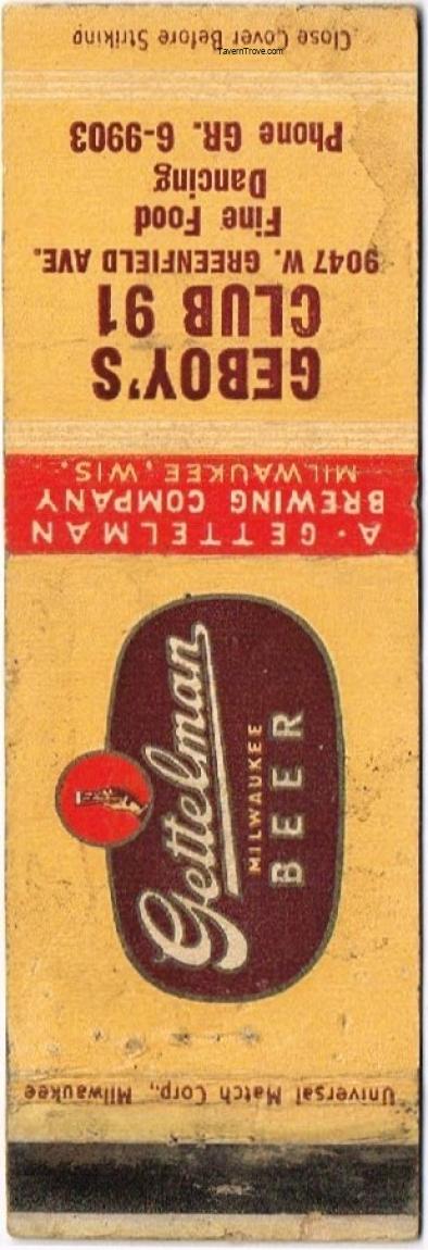 Gettelman Milwaukee Beer Matchcover Item #45491