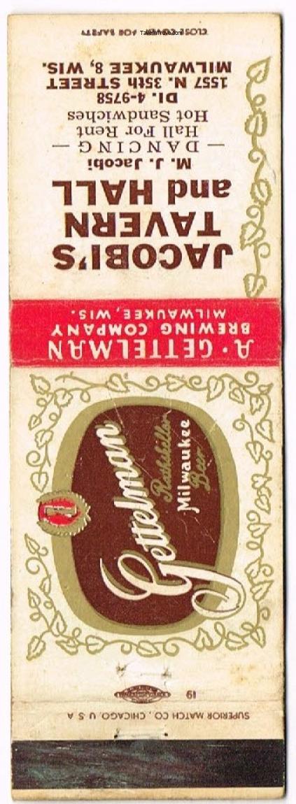 Gettelman Rathskeller Milwaukee Beer Matchcover Item #105943