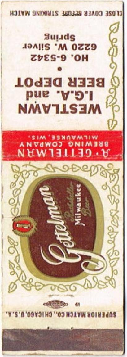Gettelman Rathskeller Milwaukee Beer Matchcover Item #105974