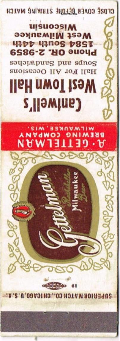 Gettelman Rathskeller Milwaukee Beer Matchcover Item #111601