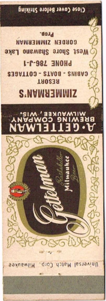 Gettelman Rathskeller Milwaukee Beer Matchcover Item #112027