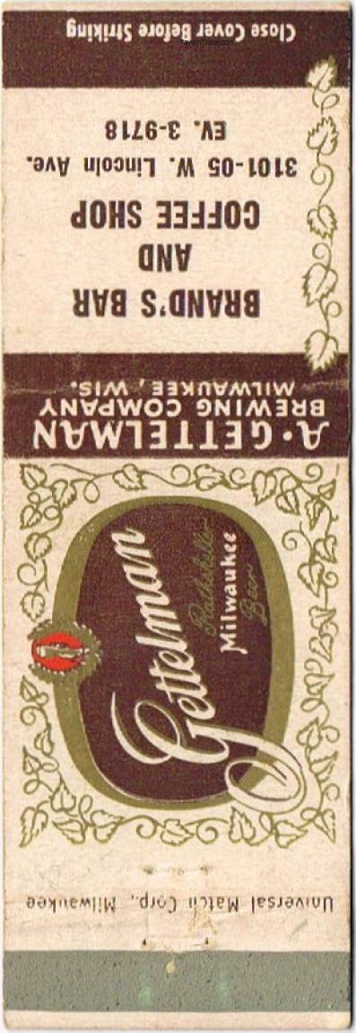 Gettelman Rathskeller Milwaukee Beer Matchcover Item #112386