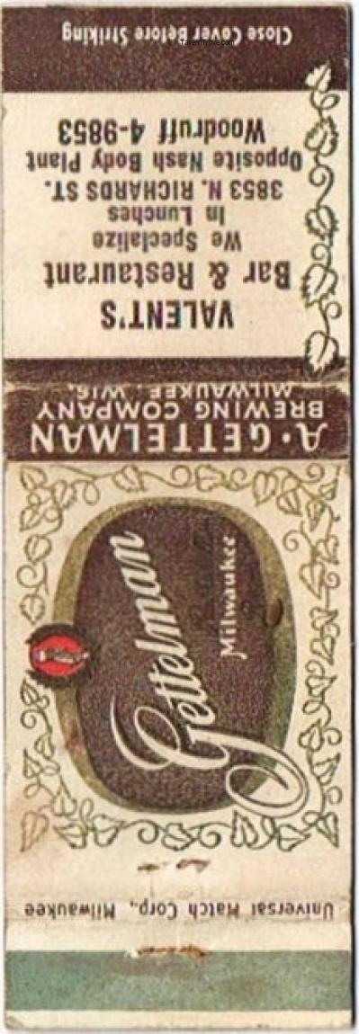 Gettelman Rathskeller Milwaukee Beer Matchcover Item #97257