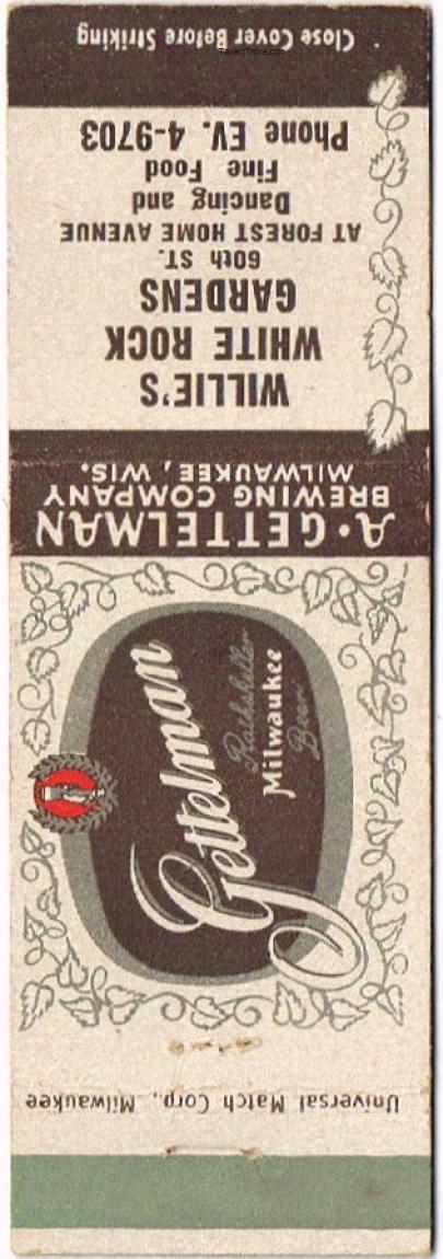 Gettelman Rathskeller Milwaukee Beer Matchcover Item #97639