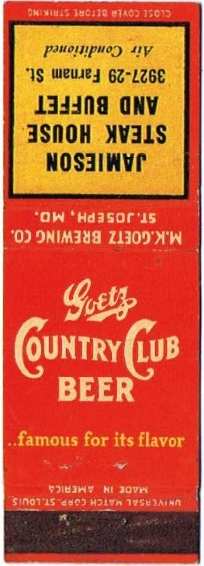 Goetz Country Club Beer Matchcover Item #111203