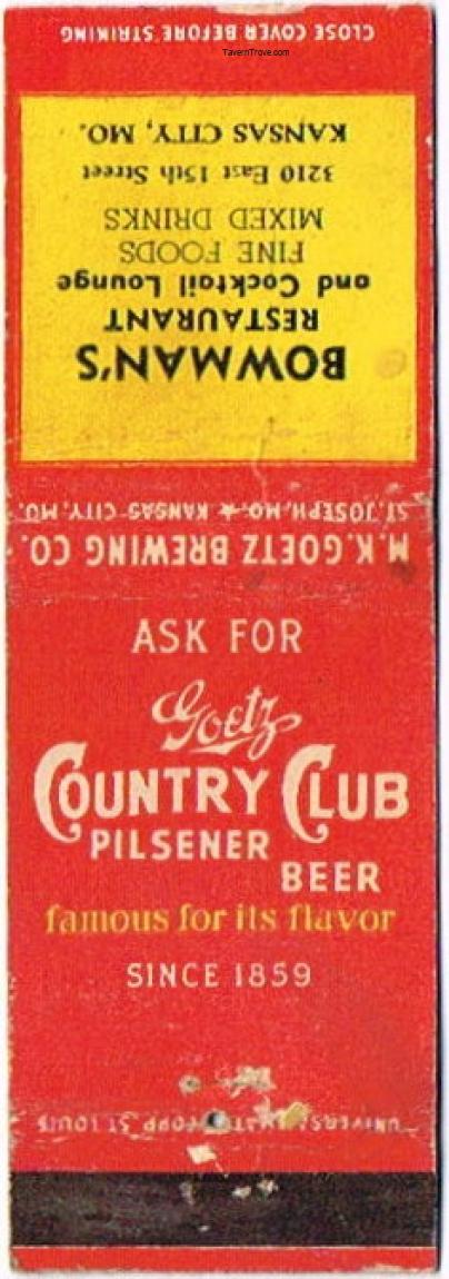 Goetz Country Club Pilsener Beer Matchcover Item #105080