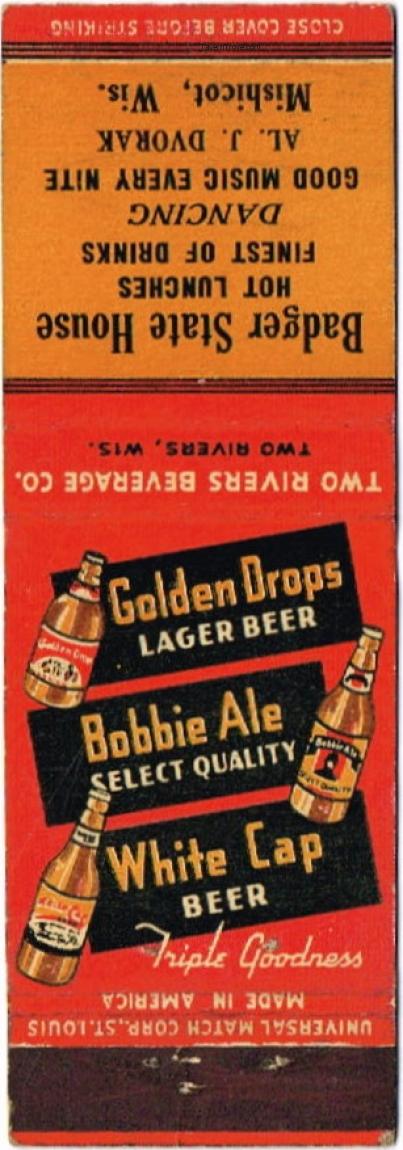 Golden Drops/Bobbie Ale/White Cap Beer Matchcover Item #107596