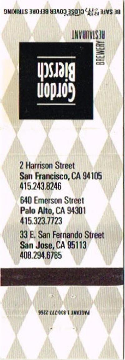 Gordon Biersch Brewery Matchcover Item #106625