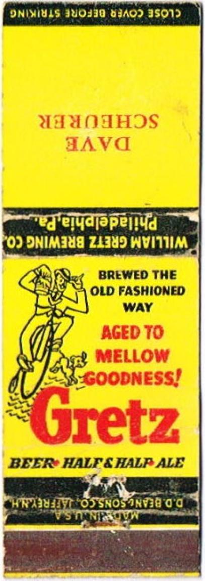 Gretz Beer/Half & Half/Ale Matchcover Item #105063