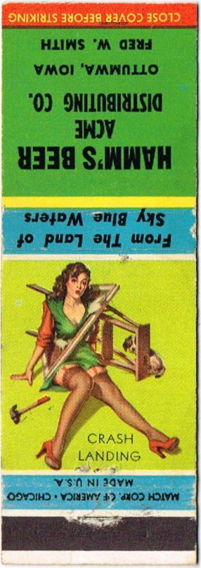 Advertising Acme Distributing Co. of Ottumwa, IA. Matchcover made by the Superior Match Co. Chicago, IL. Measures 113mm.