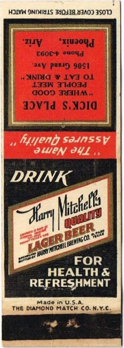 Harry Mitchell's Quality Lager Beer Matchcover Item #114695