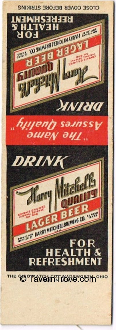 Harry Mitchell's Quality Lager Beer Matchcover Item #87750