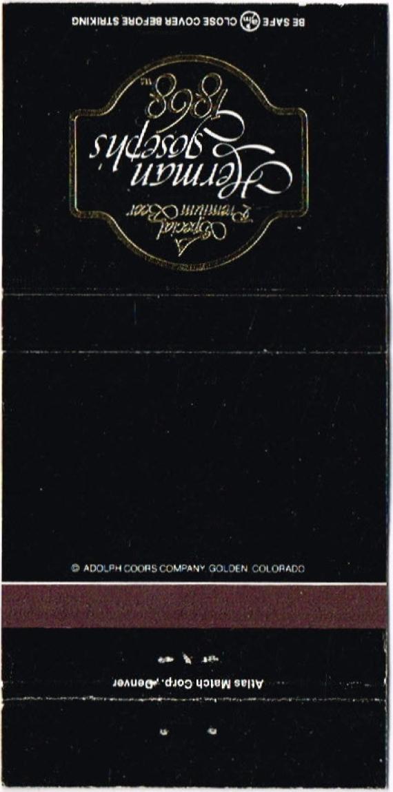 Herman Joseph's 1868 Beer Matchcover Item #98870