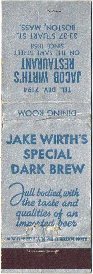 Jacob Wirth's Special Dark Brew Matchcover Item #26199