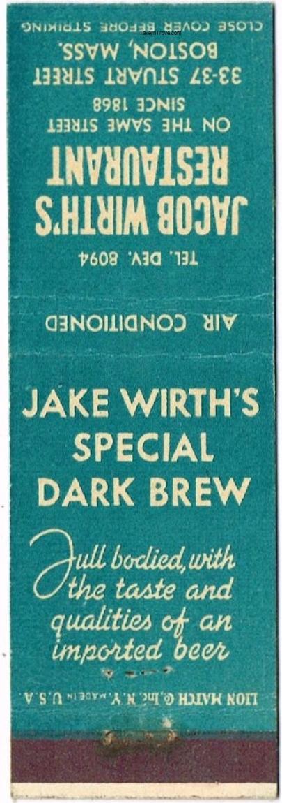 Jacob Wirth's Special Dark Brew Matchcover Item #105809