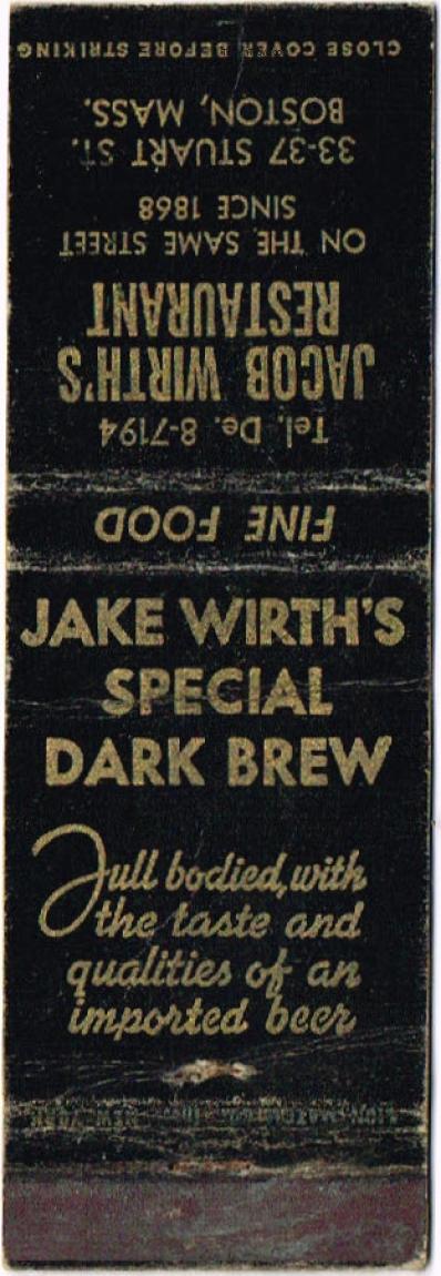 Jacob Wirth's Special Dark Brew Matchcover Item #43524