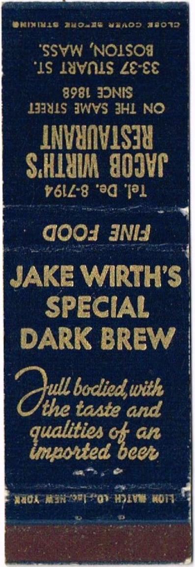 Jacob Wirth's Special Dark Brew Matchcover Item #43526