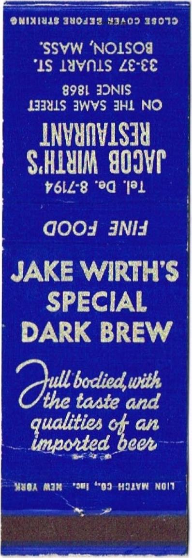Jacob Wirth's Special Dark Brew Matchcover Item #43528