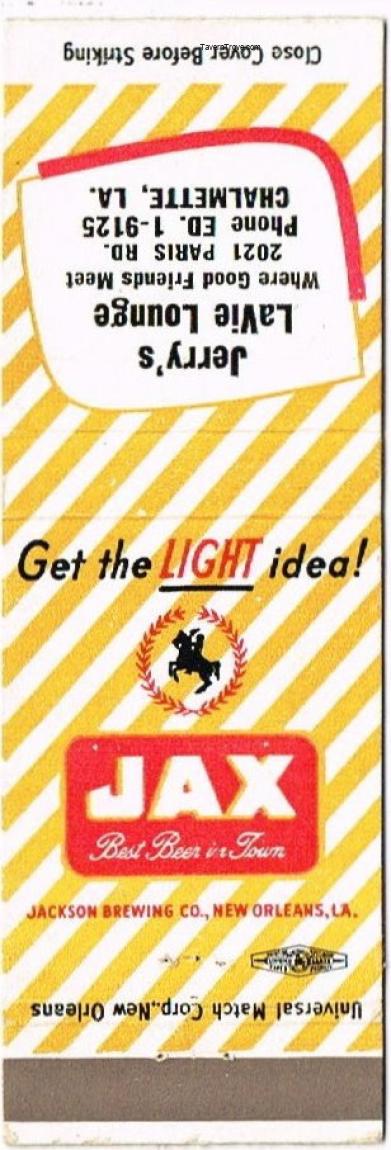 Jax Beer Matchcover Item #93297