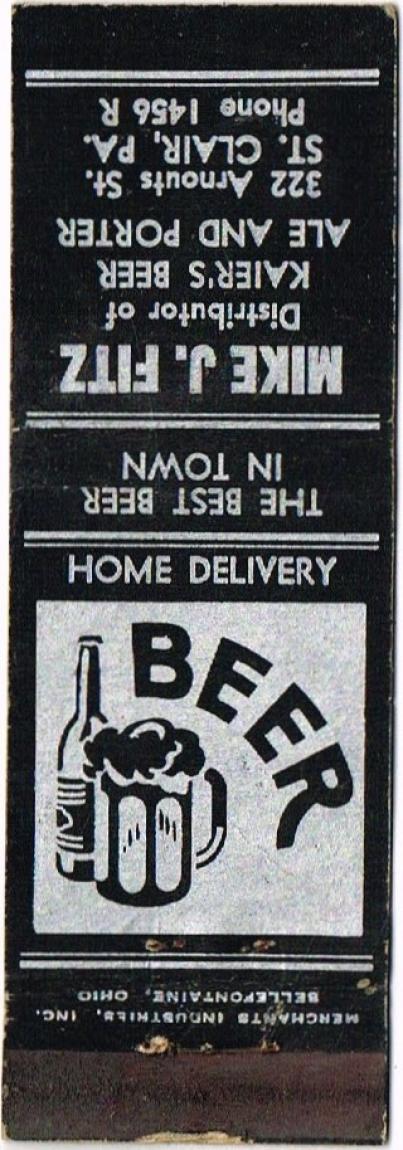 Kaier's Beer Ale and Porter Matchcover Item #9153