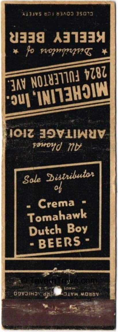 "Sole Distributors Of Crema, Tomahawk, Dutch Boy Boy Beers"